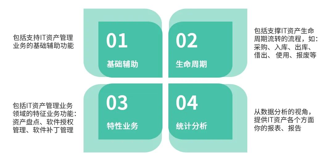 该方案不仅具备资产管理应具备的功能和特点,而且针对“IT资产”这一类特殊的资产,提供资产盘点、移动报警、软件许可管理、 软件使用监控、采购与合同管理等功能,对资产的整个生命周期实现全程的管理。